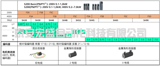 SINAMICS S200 伺服系統(tǒng)包括伺服驅(qū)動器,伺服電機(jī),動力及編碼器電纜。